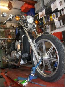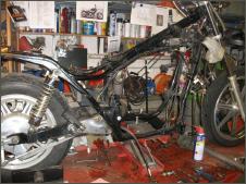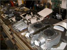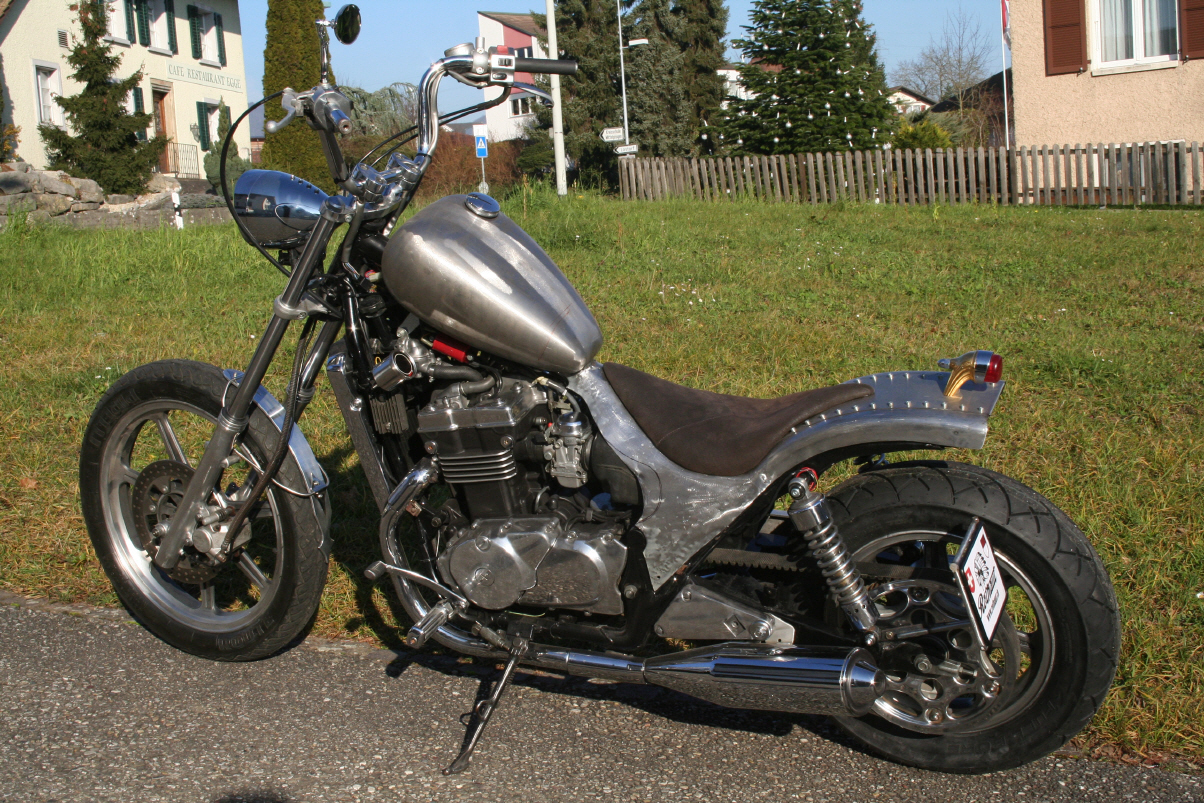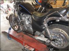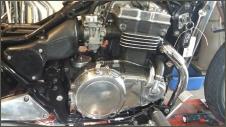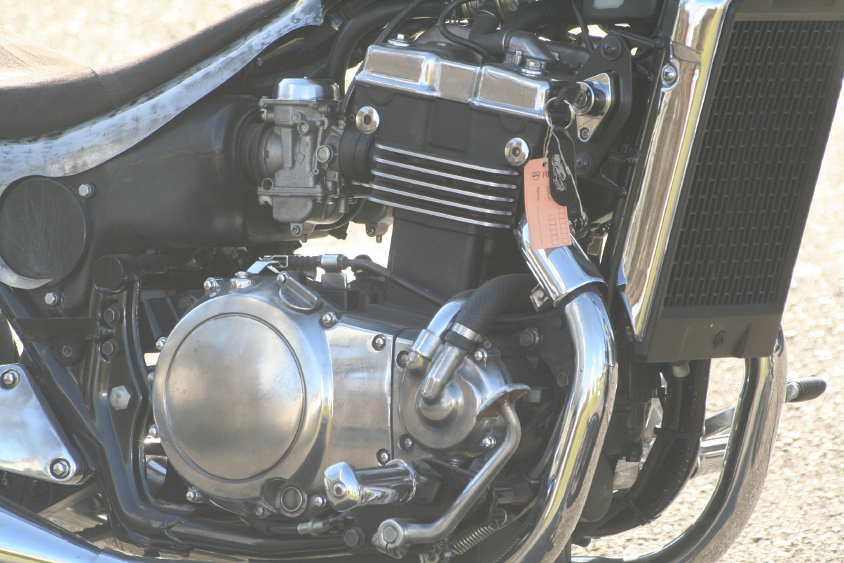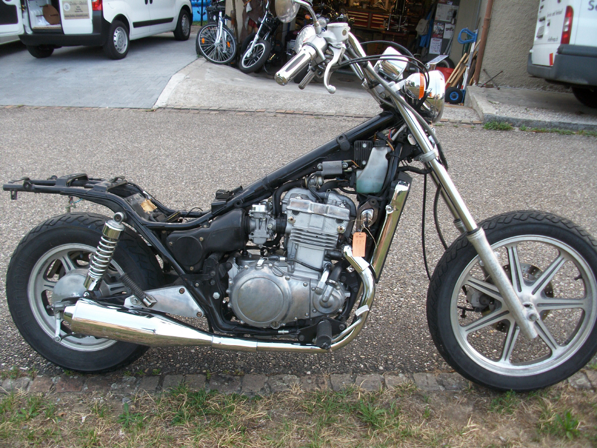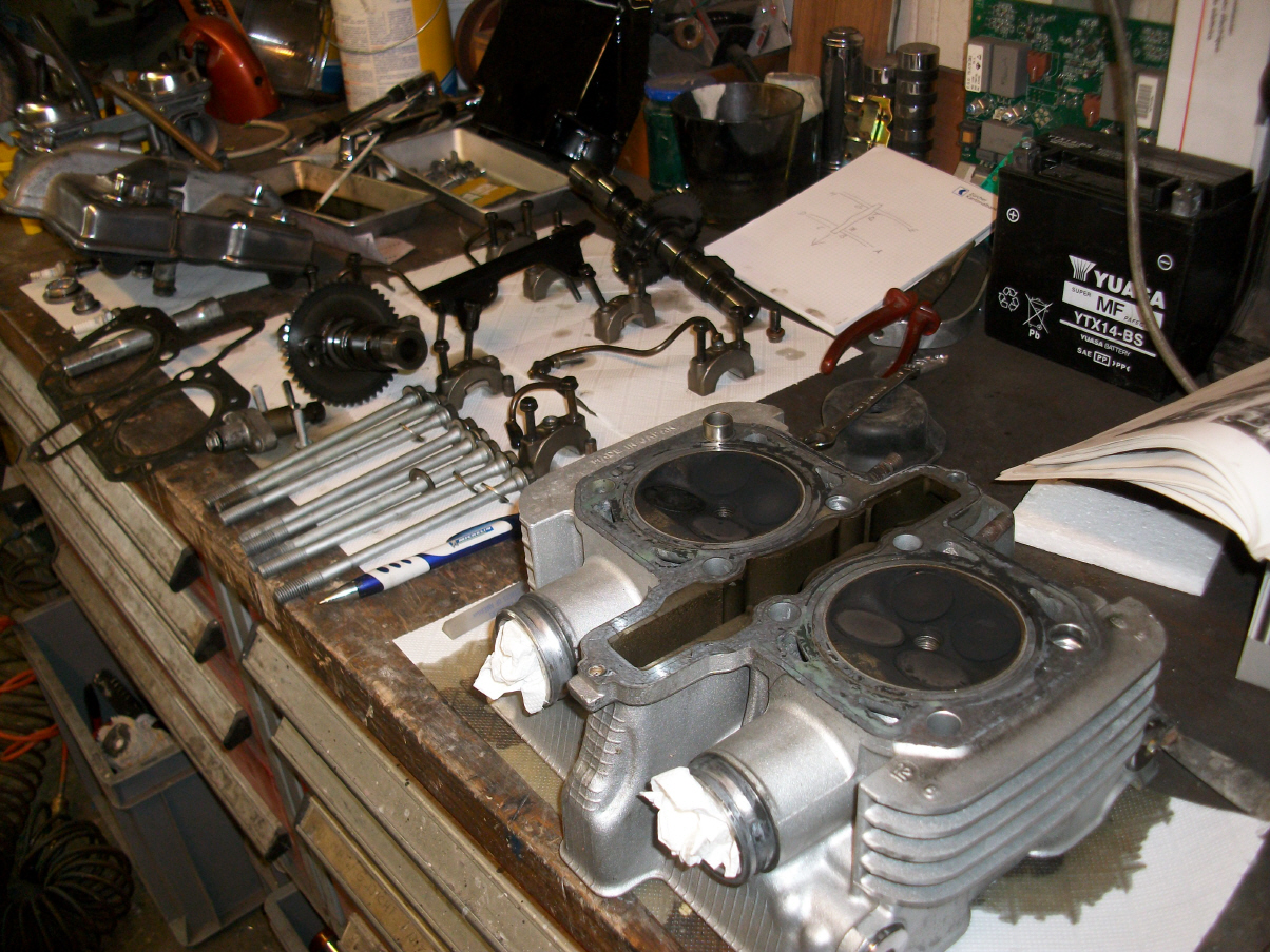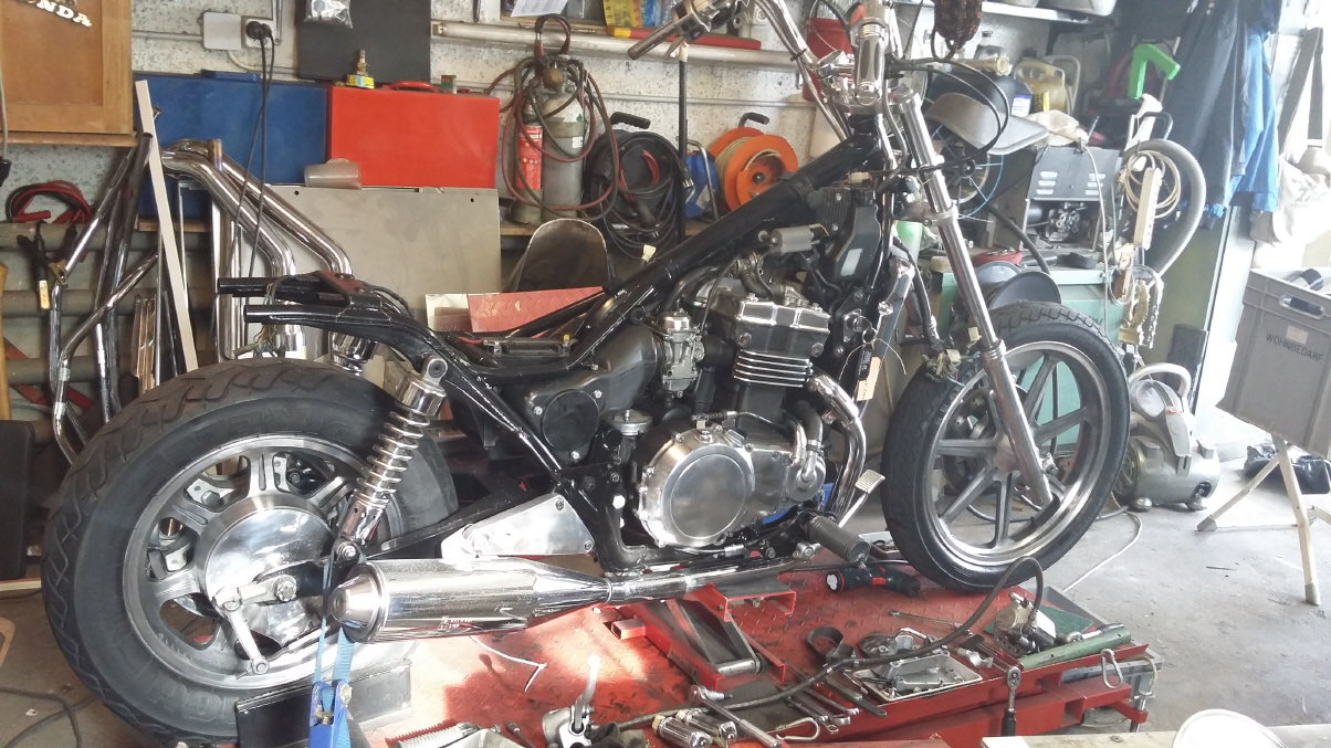 |   | Nun widme ich mich der Technik. Bevor ein Umbau realisiert wird muss da Bike technisch i.o. sein, sonst ist die Enttäuschung nacher gross wenn der Bock nicht richtig läuft und Du hast so viel Arbeit investiert. Erster Schritt, die Kopfdichtung. Die Kawa hat beim Testlauf ziemlich viel weissen Rauch abgesondert. Hab die ganze Nachbarschaft eingenebelt. Also muss die Kopfdichtung ersetzt werden.