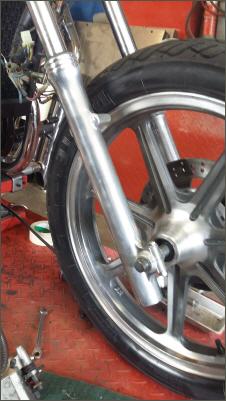 |   | Jede Schraube wird wieder aufpolliert. Die Felgen bearbeite ich mit einer Drahtbürste, das gibt einen speziellen Effekt - gefällt mir. Jetzt sieht sie wieder aus wie neu. Freu mich auf den Umbau. |