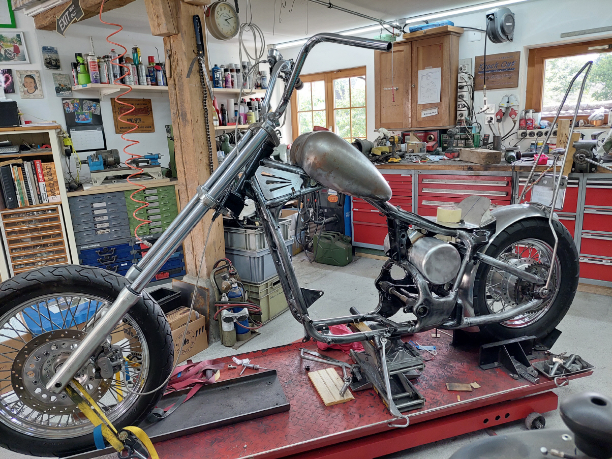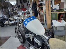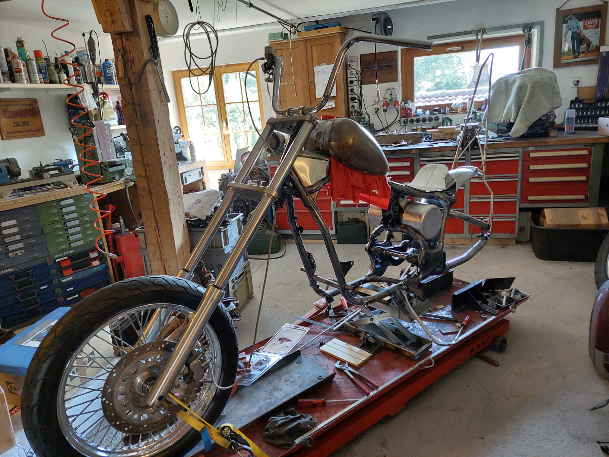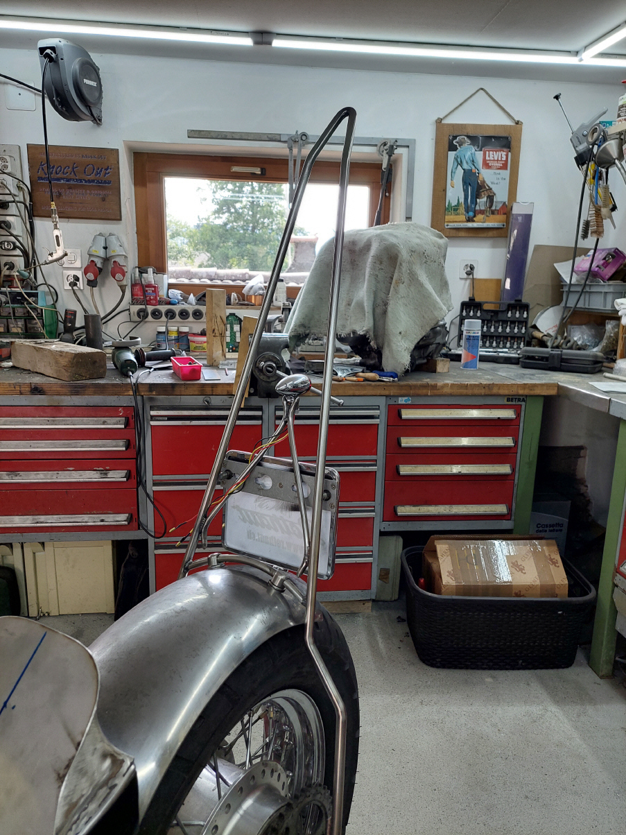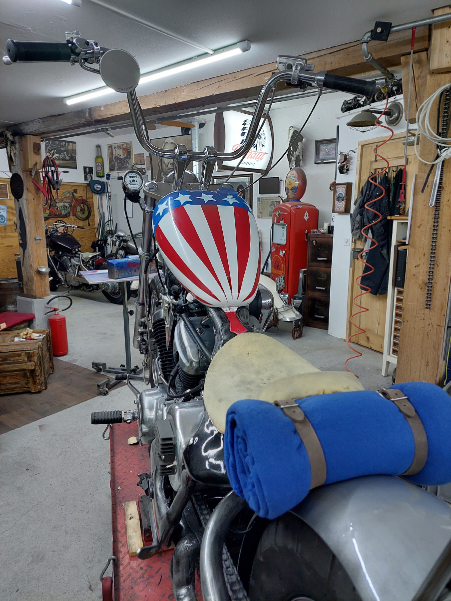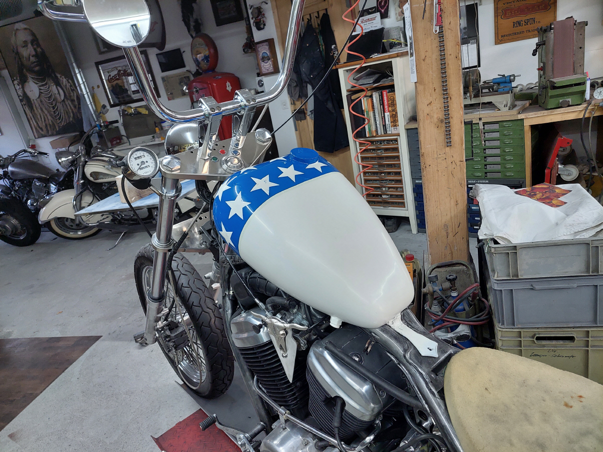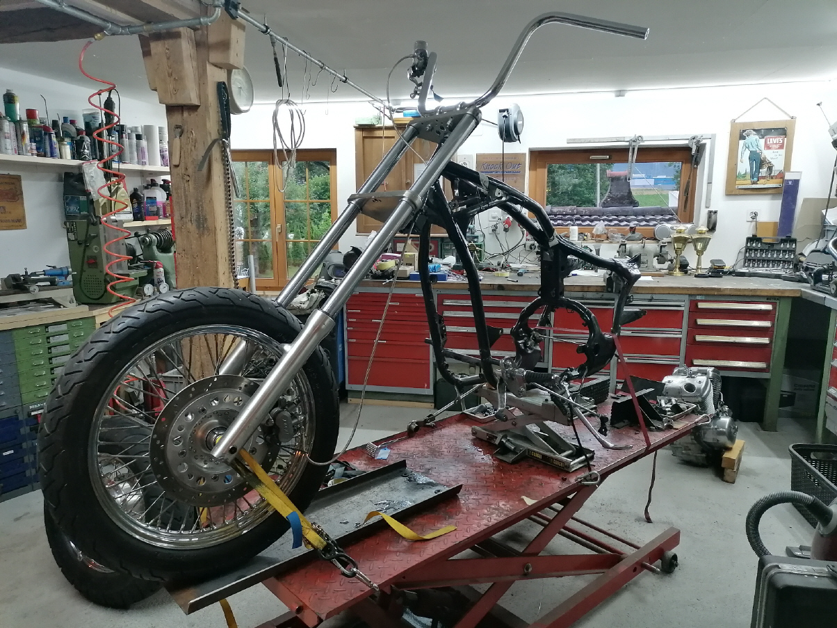 | Diese Honda weckt alte Erinnerungen. Schon beim Kauf ist klar was ich bauen möchte. Die lange Gabel inspiriert mich und ich möchte einen lang gehegten Traum verwirklichen Ein Easy-Rider soll es werden. Dieser Film hat mich damals infiziert und ich war begeister von diesem Bike und das Gefühl von unendlicher Freiheit. Also was liegt näher als aus dieser Grundlage einen Easy-Rider zu bauen. Los gehts.................... | |