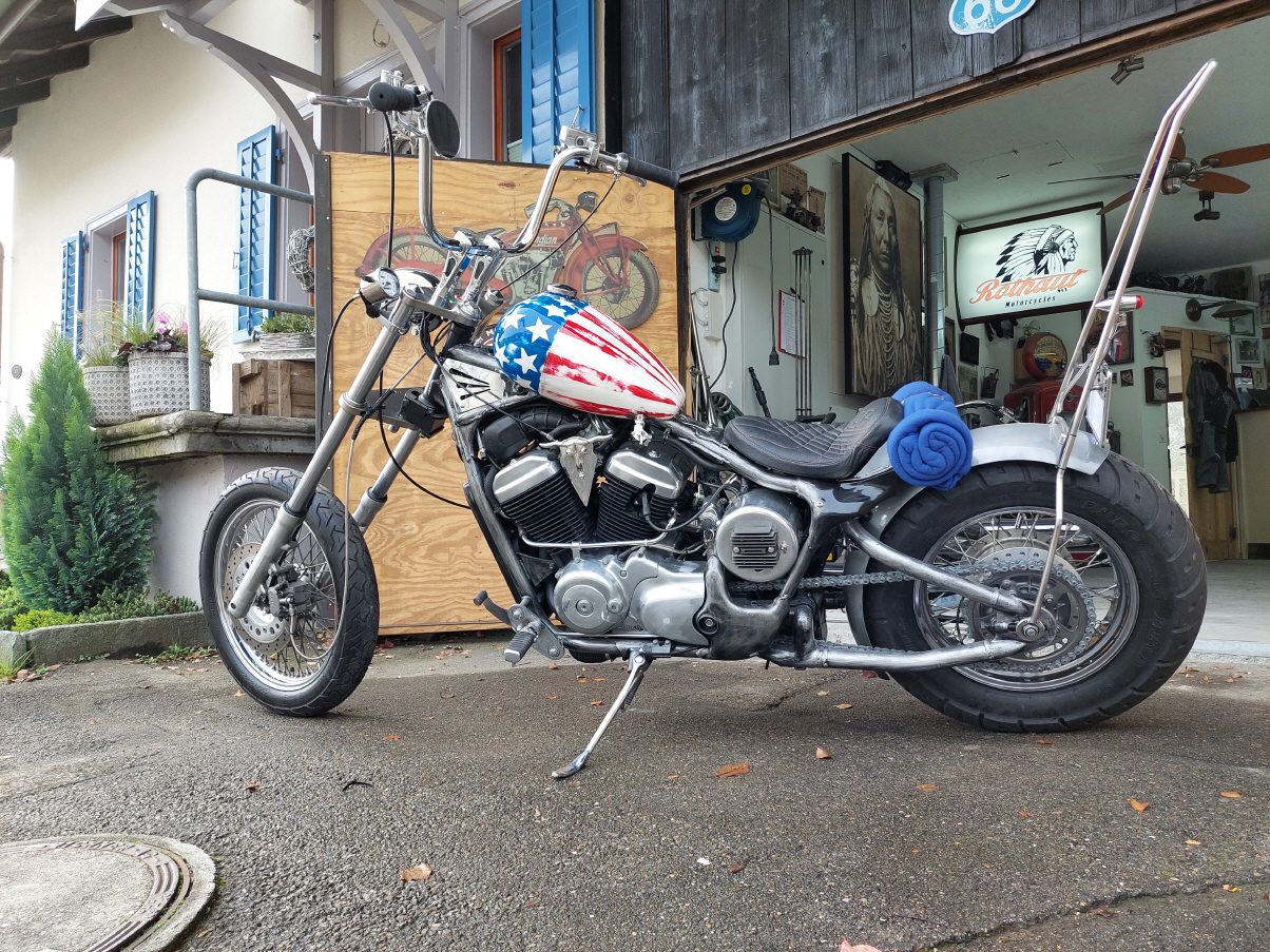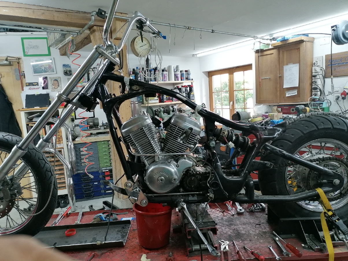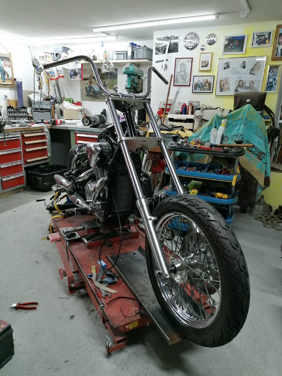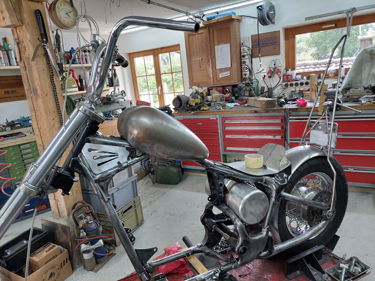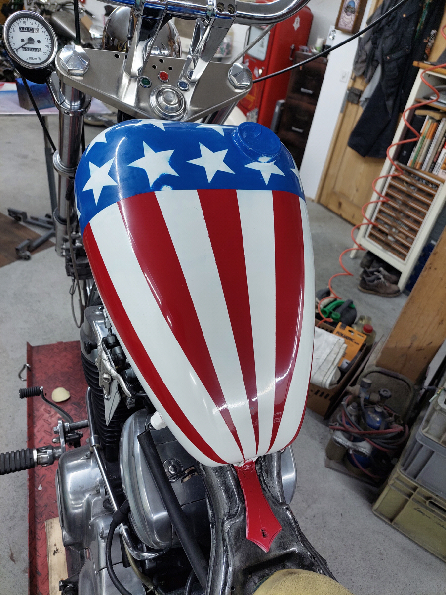 | Diese Honda weckt alte Erinnerungen. Schon beim Kauf ist klar was ich bauen möchte. Die lange Gabel inspiriert mich und ich möchte einen lang gehegten Traum verwirklichen Ein Easy-Rider soll es werden. Dieser Film hat mich damals infiziert und ich war begeister von diesem Bike und das Gefühl von unendlicher Freiheit. Also was liegt näher als aus dieser Grundlage einen Easy-Rider zu bauen. Los gehts.................... | |