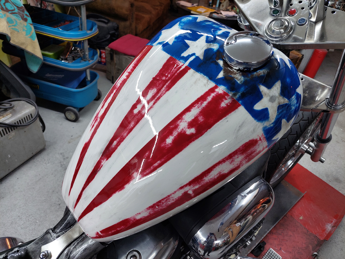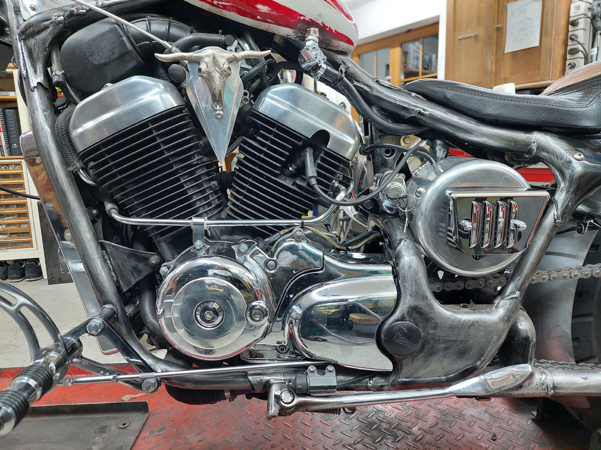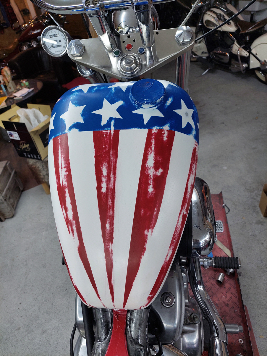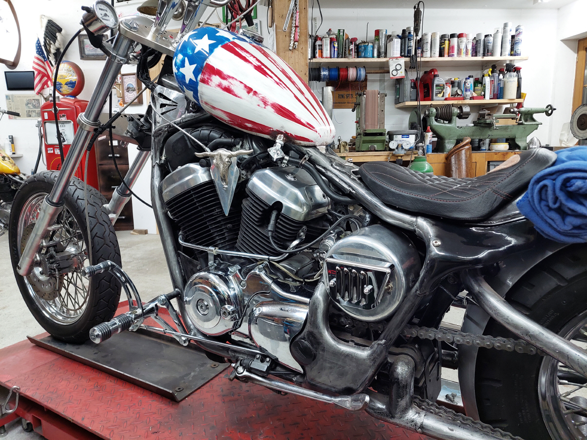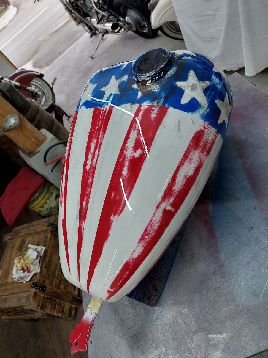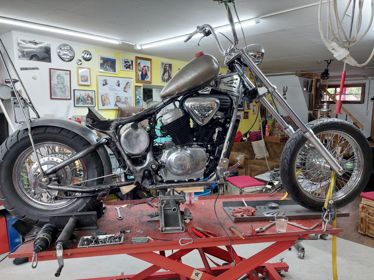 | Diese Honda weckt alte Erinnerungen. Schon beim Kauf ist klar was ich bauen möchte. Die lange Gabel inspiriert mich und ich möchte einen lang gehegten Traum verwirklichen Ein Easy-Rider soll es werden. Dieser Film hat mich damals infiziert und ich war begeister von diesem Bike und das Gefühl von unendlicher Freiheit. Also was liegt näher als aus dieser Grundlage einen Easy-Rider zu bauen. Los gehts.................... | |